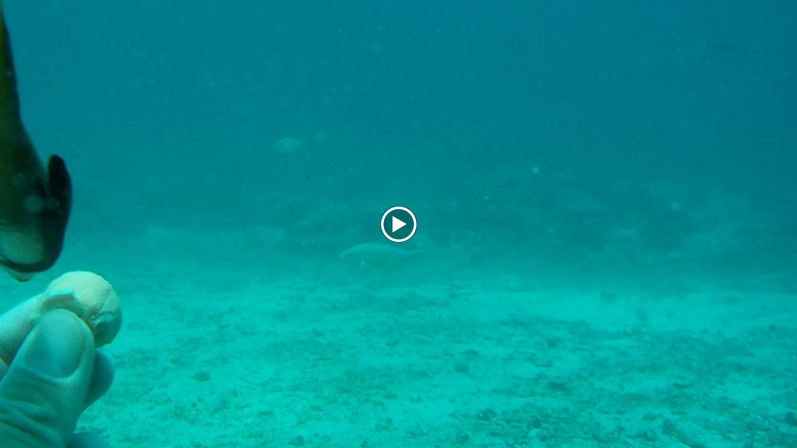 下水後會先讓整批人坐在海底適應水壓,順便玩餵食秀